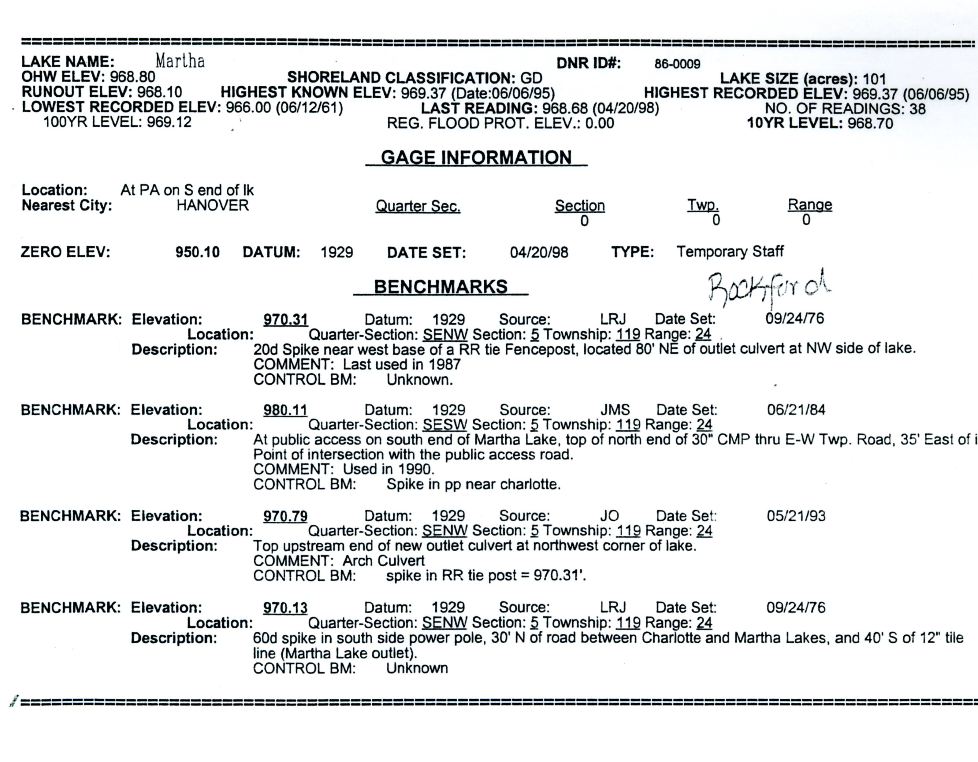 1987-89 Lake Outlet Culvert Project Info